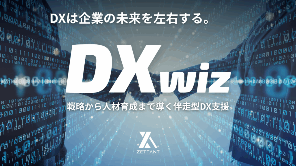 DX wizは、経営視点とフルスタック技術を兼ね備えたスペシャリストチームによる包括的DX支援サービスです。